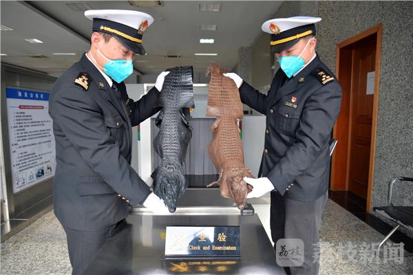 记者今天从南京海关了解到,南京海关下属镇江海关本周在办理一艘驶自泰国的国际航行船舶进境换班手续时,从一名船员的随身行李物品中发现携带进境的鳄鱼皮2张。11月23日,经国家林业局森林公安司法鉴定中心鉴定,该查获鳄鱼皮为暹罗鳄所有,被列入《濒危野生动植物种国际贸易公约》(CITES公约)附录I的物种,属于国家一级保护动物。(曾强/文)