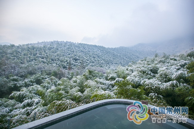 据了解,南山竹海景区位于溧阳最南部,拥有3.5万亩翠竹的覆盖,由于其自然低5度的独特气候,因此,在初冬来临的时候,南山竹海景区独占鳌头迎接了常州第一场雪。万亩竹海在白雪的承托下,更显梦幻绮丽,也不由得引来游客驻足观赏。