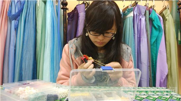 为了让更多人认识发簪、了解发簪的佩戴方法,也为了自己的手工制作得到资金支持,王心怡同学还为同样爱好汉文化的朋友们定制了很多发簪,这让她有了更多资金去购买材料,将自己新奇的想法变成实实在在的簪子。在这个过程中,她周围的朋友渐渐知道了这位执着的女孩,纷纷支持她的“小事业”。创业大赛对她来说是一次试水,她谦逊地说:“我只是在做自己喜欢的事情,目的也很纯粹,勿忘传统文化,接力传承足矣。”