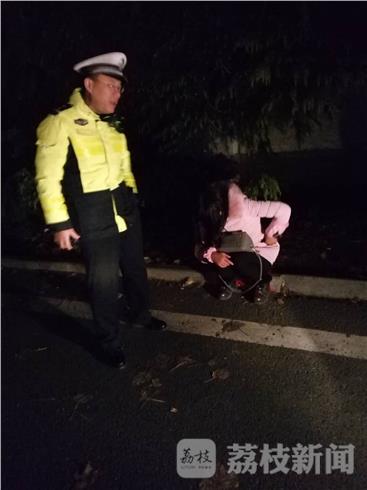 27日晚20时40分左右,正在宁连主线开展夜间整治行动的南京高七二中队中队长许坤接到大队指挥室通知:在辖区六合服区附近路面上,有一名白衣女子精神恍惚,来回横穿公路,情况相当危险。接到警情后,许坤和民警于立东,辅警蒋来金立即赶往现场。 到达六合服务区后,由于天黑且服务区较大,许坤与于立东虽兵分两路,查找二十分钟仍一无所获。考虑到室外温度接近冰点,女子一旦体力不支,肯定会出现意外,两名民警心急如焚。一面扩大搜索范围,一面告知大队注意信息反馈。时间一分一秒的过去了,就在大队指挥室通知女子家人通过手机定位查找到该女子就在服务区的同时,许坤和于立东在加油站旁的小树林里发现了这名坐在地上,精神恍惚的女子。