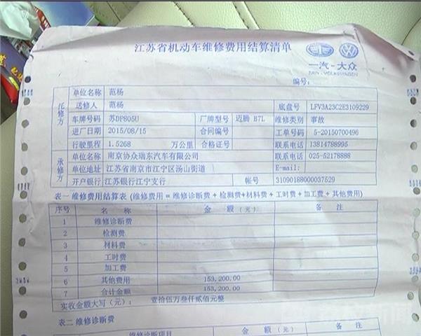 这辆一汽大众迈腾轿车是范先生在2015年2月份购买的,去年8月份,因为追尾事故在南京市江宁区汤山街道的南京协众瑞东汽车有限公司维修后,车子就一直毛病不断,于是他就将车开到了常州当地的4S店进行检测,谁知道4S店的工作人员却告诉他,车子变速箱使用的旧配件。