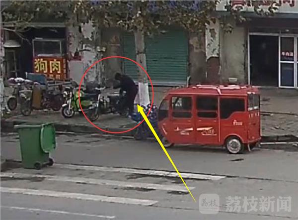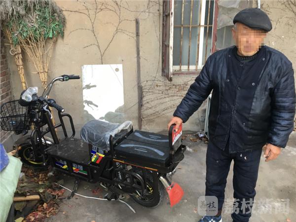 受害人刘女士在徐州复兴北路殷庄桥附近开了一家电动车行,11月24日下午3点多,她离开店铺一会功夫就发现放在店铺门口的一辆电动车不见了,于是赶紧报警。朱庄派出所接警后,调取了案发现场监控,发现盗走电动车的竟然是一名约60岁左右的老年人,乘坐一辆电动三轮车到达现场。