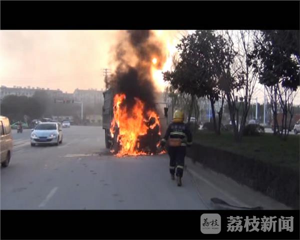 昨天(11月28日)傍晚5点多,在南京江宁的秣周路和吉印大道的路口,一辆运送稻谷的小货车突然发生自燃,消防紧急赶往现场扑救,5分钟后大火被扑灭,但小货车的驾驶室还是全部被烧毁。