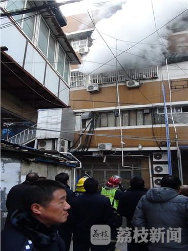 今天上午8时20分,南京市鼓楼区龙池庵23号交运公寓3楼突然起火,引燃了几间宿舍。在事发楼下清晰可见出事几间宿舍窗口有浓烟冒出。火灾发生后,南京消防部门的10几辆消防车近30名消防官兵赶到现场,紧急展开扑救,并疏散楼层居民。