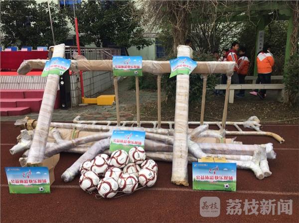 2016“公益体彩快乐操场”走进南京市溧水区东屏中心小学,今天(11月29日)上午,江苏体彩在南京市深水区东屏中心小学举行了2016“公益体彩快乐操场”体育器材捐赠仪式,现场将乒乓球台、足球门、跳绳、毽子等十余种体育器材捐赠给了该校师生。