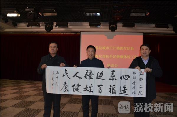 11月28日,由盐城市卫计委组建的55人医疗组抵达新疆伊犁察布查尔锡伯自治县,他们将分成16个小组分赴当地6个重点乡镇,开展为期一个月的医疗援助,协助当地完成城乡居民健康体检工作。据了解,这是盐城市开展对口支援工作以来,派出人员最多、时间最长的专项援助工作组。