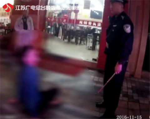 在民警执法的时候,该男子突然冲到民警身边对民警面部和背部进行殴打;这种情况下,民警对其迅速制服,将其压倒在地。