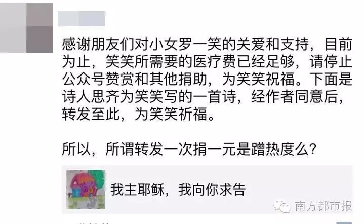 发布在“罗尔”微信号上的《罗一笑,你给我站住》一文披露了孩子患病后这一家的窘境。