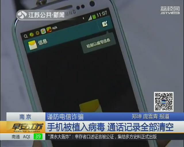 【手机被植入病毒 通话记录全部清空】