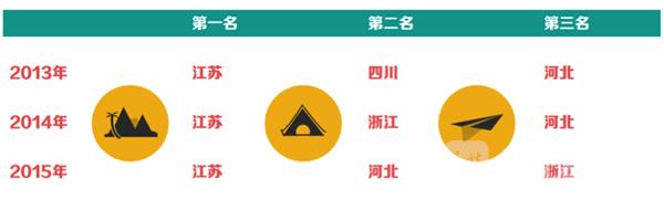 自2013年至2015年底,农村地区网购用户数排名之首被江苏垄断,江苏农民可谓常年热衷于网购;2013、2014年均排名第三的河北,2015年跃升第二;2013年曾是网购用户数第二大省的四川,此后跌出前三甲名单,被浙江取而代之。