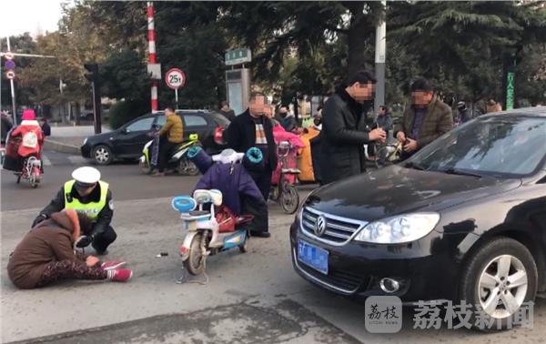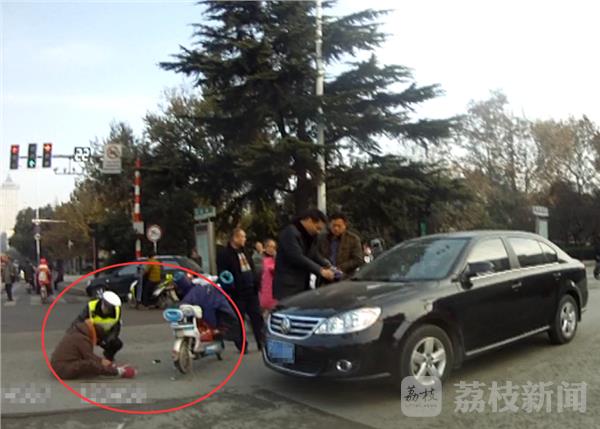 当天中午,正在建国路岗执勤的云龙交警大队民警,发路口一辆黑色大众轿车将一名骑电动车的老的人撞倒,民警赶紧上前询问老人情况。