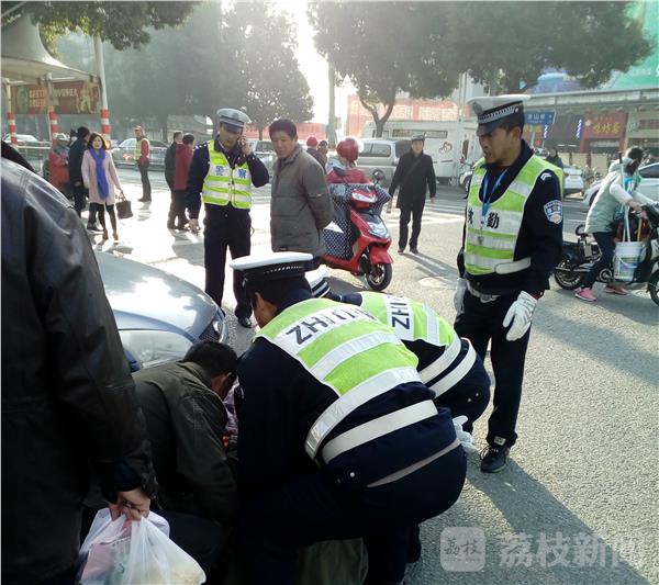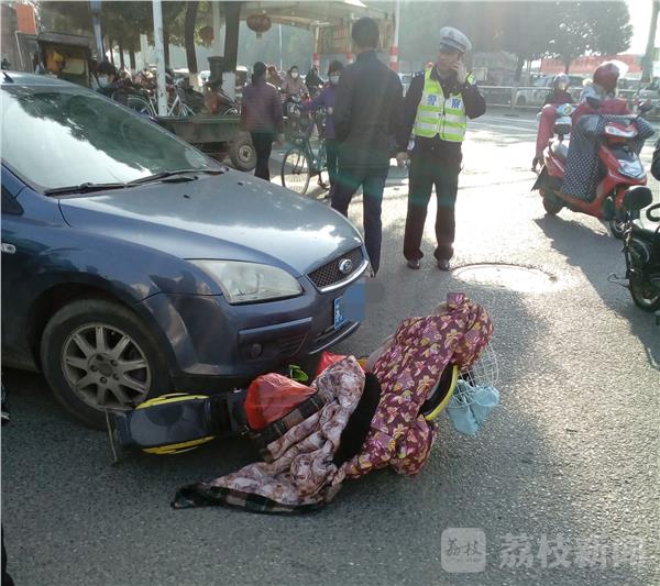 今天(12月2日)上午九点左右,在南京市六合区泰山路与白果路交叉路口,一辆福特轿车撞倒一骑电瓶车女子,造成骑车人腿部严重受伤。事故发生时恰巧交警就在旁边,而且路边交警宣传车正在进行交通事故案例宣传。