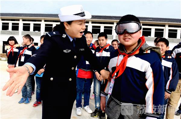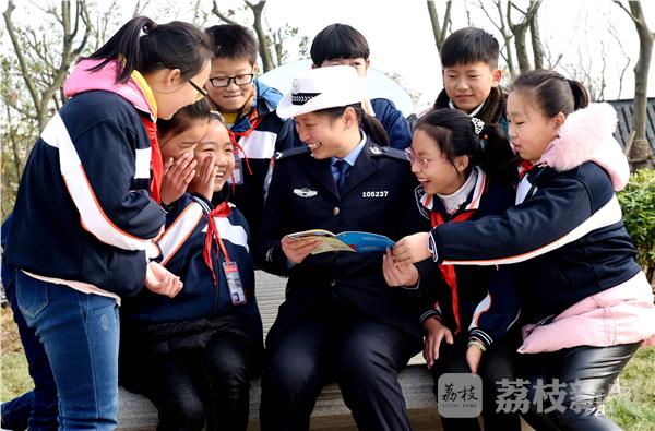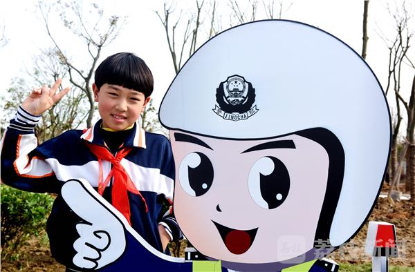 2016年12月2日,仪征市陈集镇乡村交通安全主题公园内,该镇“八一希望小学”的学生,和公园内设置的交通警察塑像合影。