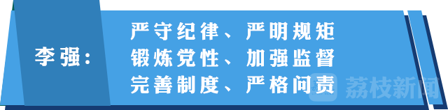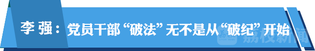 在集体观看了深入剖析徐超、邢道乾、王东良、王德善等违纪违法典型案例的警示教育片后,李强说,这些腐败分子曾经身处领导岗位却放松自我要求,从不守纪律、不讲规矩开始,一步步走向违法犯罪深渊,不仅给自己和家庭带来无法挽回的损失,更给党的形象和事业造成严重危害,深刻警示我们:党员干部“破法”无不是从“破纪”开始,纪律红线一旦突破,腐败堕落就很可能接踵而来。