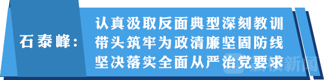 石泰峰在主持大会时要求,全省各级党组织和党员干部要深入学习贯彻李强同志的讲话精神,认真汲取反面典型深刻教训,做到思想上更加警醒,行动上更加自觉,坚决遵守党章和各项纪律规矩。