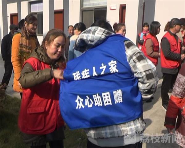 众心助困联合会为托养服务站21位残疾人每人带来了一件马甲和一袋大米,成员陈晓燕帮助一位糖宝宝患者穿上了马甲,并亲切地拉住患者的手拉起了家常话,询问患者有什么需求,并表示会尽力帮助,活动在21位残疾人的感谢声中结束。