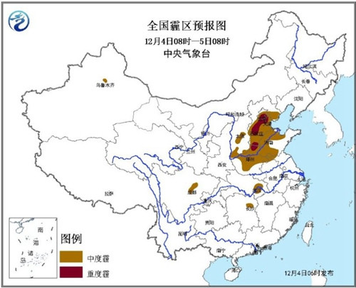 中新网12月4日电 据中央气象台消息,中央气象台12月4日06时继续发布霾橙色预警并升级发布大雾橙色预警,较强冷空气将影响中东部地区。