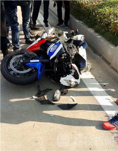 荔枝网友在现场看到一辆轿车前面被撞的面目全非,跑车倒在路牙边上。现场有不少汽车、跑车的塑料品。据轿车驾驶员讲正准备左拐弯进交通运输局路口时,看到前方跑车速度很快,跑车刹车不及就跟自己的车发生碰撞了,跑车驾驶员自己打车到医院去了。
