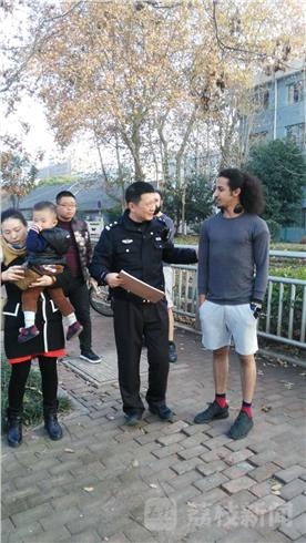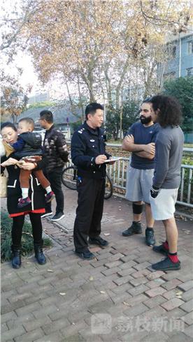出警的民警任绍翔虽然是位老同志,但是却是一位通过英语六级的民警。任警官跟当事人反复联系,这位沙特报警人只说是在学校大门这,但是南理工有好几个大门,最终对周围环境进行确认才确定原来报警人是在理工大的7号门。原来这位来自沙特的小伙叫巴德,是南理工的一位留学生,下午刚刚骑自行车不小心撞上了一个电动车,电动车后座的儿童跌倒在地。