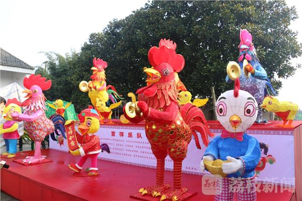 随着农历生肖鸡年的临近,这两天,江苏句容国家级非物质文化遗产——秦淮灯彩传承人陈柏华团队创作完成了一组“吉祥乐队”的鸡年灯彩,这些灯彩不仅色彩艳丽,而且还能用真锣真鼓敲打出“动感十足”的新春乐曲。
