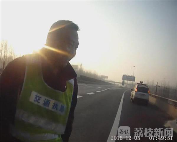 淮安市交警支队高速一大队民警王志国 :“上前进行检查 ,发现车上只有一个人 ,正在睡觉经过反复的呼叫 ,敲打车门以后 ,他才醒 醒了,以后这人问他驾驶证 ,他支支吾吾的 ,当时查到以后一股酒味。”