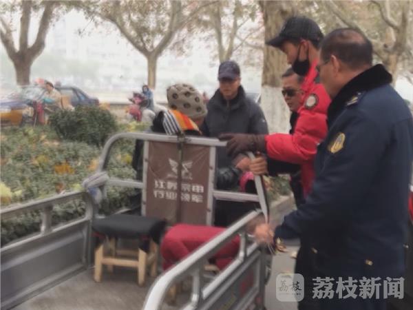 当天下午1点,执法人员在徐州市黄河西路上发现这辆电动三轮车违规载客,车上拉着两名年轻女性,还带着不少行李,执法人员立即上前将其拦下,对其进行检查。