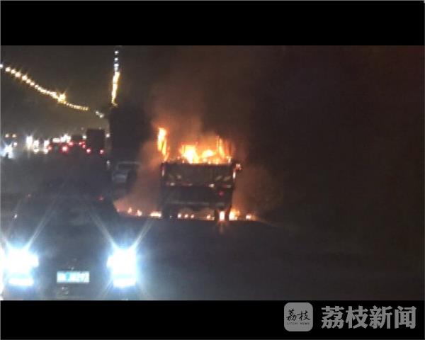 12月7日傍晚5点,扬州市华扬西路与邗江南路路口,一辆装载着纸板的货车突然起火。