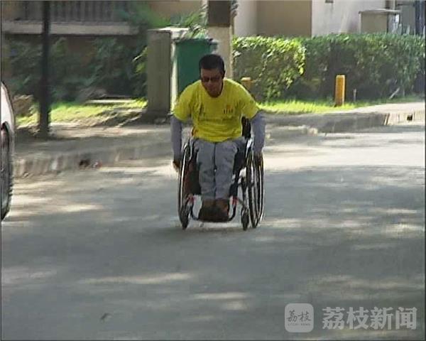 严培龙告诉记者,平时他也有通过相关的公益组织参加训练,每天摇轮椅行进三四十公里,苦练臂力,还要训练心肺耐力以及心理素质。比赛中,他的双手在轮椅握把上磨出了血泡,接着血泡也磨穿了,他用胶布把手指缠起来继续战斗。