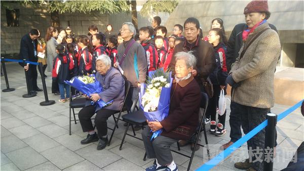 今天(12月9日)上午,侵华日军南京大屠杀遇难同胞纪念馆举行家祭活动,南京大屠杀幸存者、南京大屠杀遇难者遗属88岁高龄的艾义英老人和91岁高龄的杨翠英老人,都来到了侵华日军南京大屠杀遇难同胞纪念馆的遇难者名单墙前,缅怀被侵华日军杀害的无辜亲人。