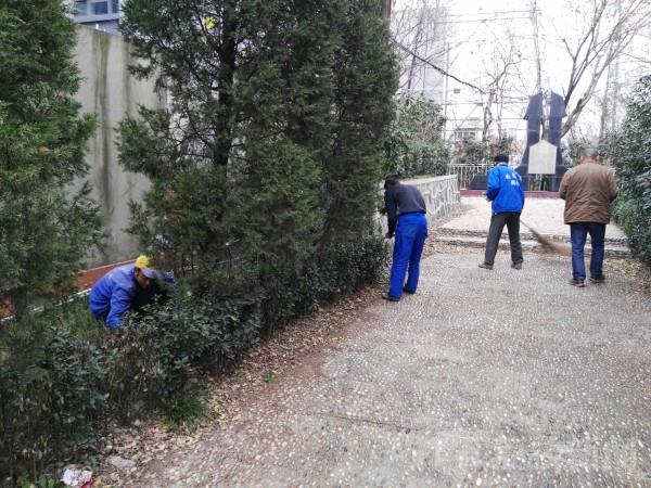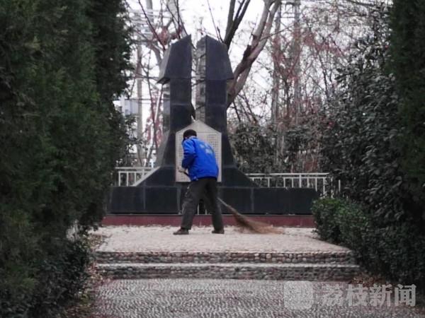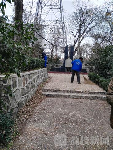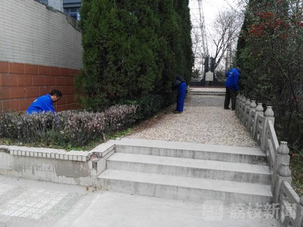 离1213南京大屠杀遇难同胞国家公祭日还有三天了,10号下午,雨花园林组织员工来到普德寺纪念牌前把沿路的落叶清扫干净,把沿路的绿化进行了修建,以迎接13日国家公祭日南京市民前来祭奠。