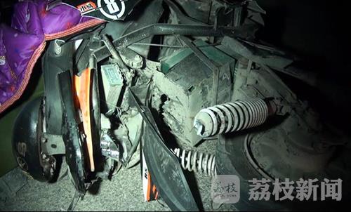在由北向南的车道里,一名身穿军用黄大衣的男子头朝东趴在那里,路面上有一大滩血迹,还有一条长长的血拖痕,已经没有了生命迹象,一辆电瓶车头朝西侧倒压在男子的一条腿上,车后轮有明显的撞击痕迹,后轮上的两根减震簧折断,整个座垫支架前移变形,南侧约十多米左右的地方,一辆面包车头朝北逆向停在由北向南的车道里,车头右角因与电瓶车发生剧烈的碰撞而面目全非,前保险杠右侧断裂脱落,前大灯损坏,引擎盖凹陷变形,前挡风玻璃呈蛛网状破碎,引擎盖、挡风玻璃上溅满殷红的血点,地面有泄漏的机油。面对询问,肇事面包车驾驶员辩称,他是与电瓶车同方向行驶的,当时的速度在七、八十码左右,电瓶车在前方来回晃动,他是避让不及,才追尾撞上了电瓶车。