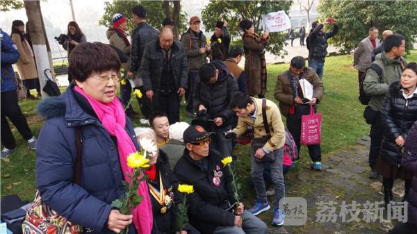 今天,12月12日,南京“关爱老兵”等民间机构在光华门堡垒遗址 (大光路)、草船峡遇难同胞丛葬地举行纪念南京保卫战牺牲将士,向大屠杀死难同胞致祭活动。来自河南、长春等地的9抗战老兵参加活动。百余名市民闻讯自发前来参加活动。