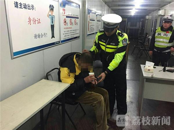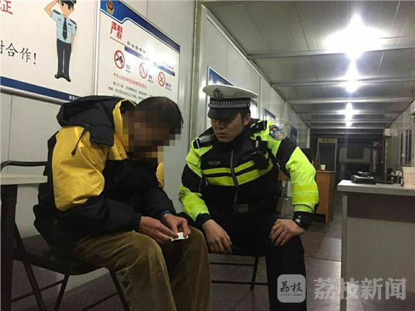 当天夜里十一点半,南京交警高速六大队民警张力、赵孝欢驾车巡逻到宁杭高速公路收费站附近时,忽然发现一名中年男子骑乘电动车在高速公路快车道上逆行,摇摇晃晃的十分危险,民警连忙把该男子拦住,用警车带到公安检查站内。