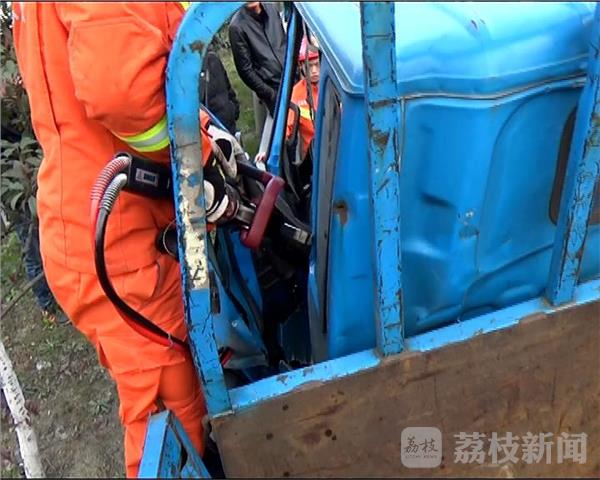 赶到现场后救援人员发现,现场一片狼藉,两辆大货车追尾,追尾货车车头严重受损,车头左侧撞上了道路护栏,驾驶室的门抵在了护栏上,驾驶员被卡在驾驶室中,但意识还很清醒。