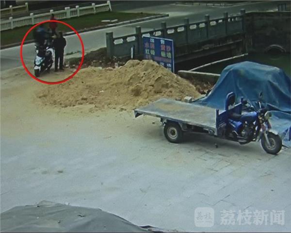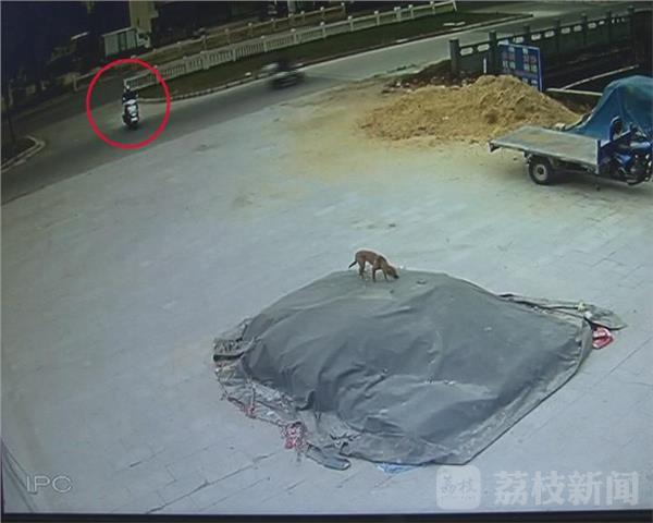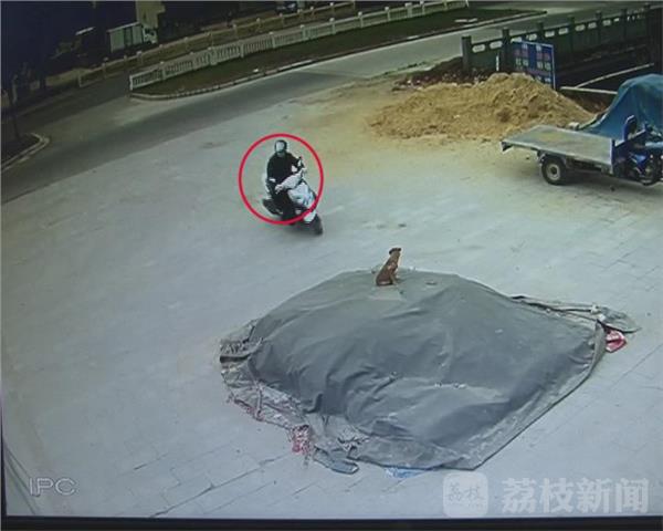 这是淮安开发区柯山路一处监控拍下的画面:一只宠物犬蹲坐在路边的沙堆上,一名骑摩托车的男子从马路对面驶来,在即将靠近这只宠物犬后,这名男子故意绕到了沙堆的左侧,随后从车上拿出了一支弓弩,在瞄准射击后,中镖的宠物犬迅速逃窜并最终躺倒在了河边。大概过了一分钟,离开监控区域后的男子沿着道路返回到了河边,在收拾好摩托车储物柜后,男子又在原地站立了一会,在确定四周无人发觉后,男子迅速将宠物犬拎上车,随后逃离了现场。