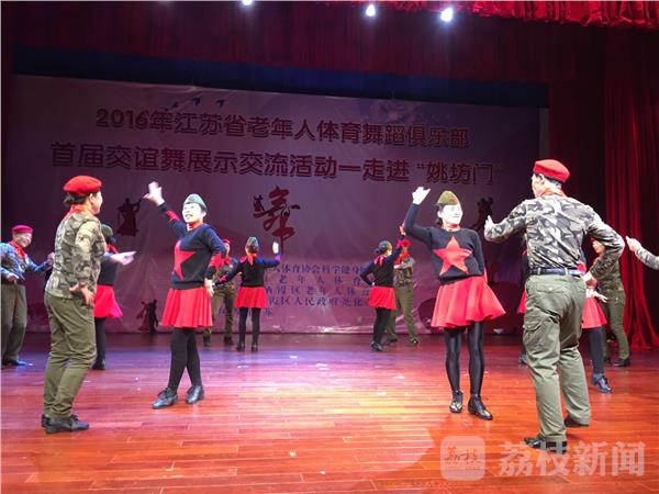 12月12日,由江苏省老年人体协、南京市老年人体协、江苏健康广播《银色舞步》节目联合主办的“交谊舞展示交流”活动在南京栖霞区体育中心四楼礼堂热力开幕,来自全市17支健身舞蹈队展示了拉丁舞、广场舞、交谊舞、民族舞蹈等不同风格的舞种。江苏健康广播《银色舞步》主持人蓝天通过江苏广播“大蓝鲸”全程直播了这次活动,网络在线观看人数突破两万。