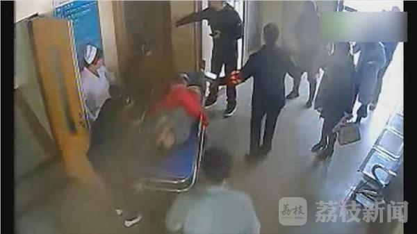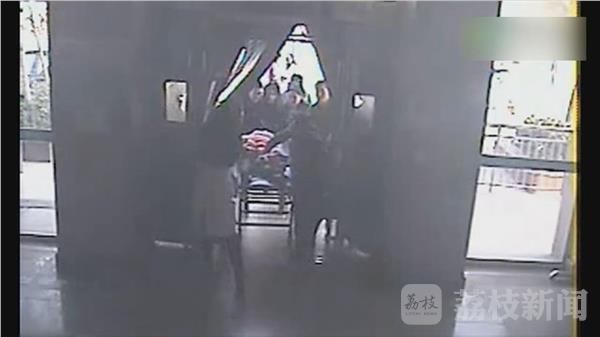 记者看到由睢宁县中医院监控记录下的视频,两名医务人员紧急推着担架车向产妇所在的方向跑去。接到产妇后医院开启了绿色通道,在医护人员的带领下乘上电梯一路直达产房,此刻产科人员已经做好接生准备。