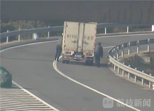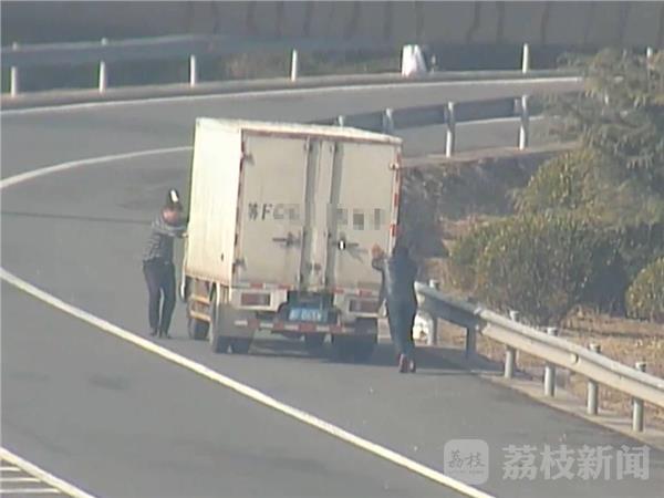 咱都知道汽车是用来开的,不过12月14日中午,徐州交警高速四大队的民警拍到了这样奇怪的一个镜头,两名男子有车不开,竟然在高速匝道推起了货车。