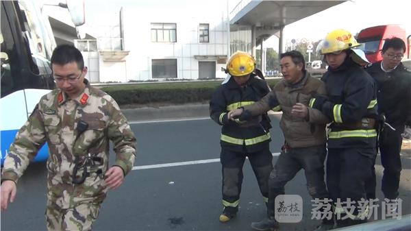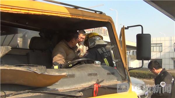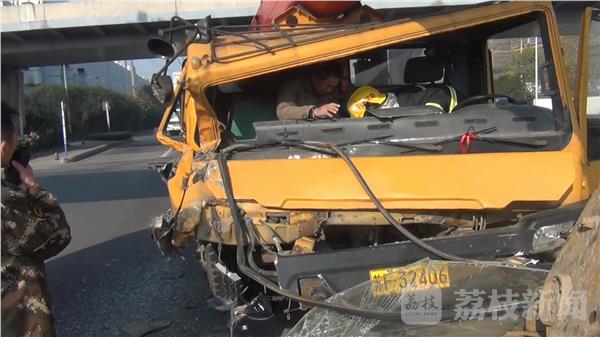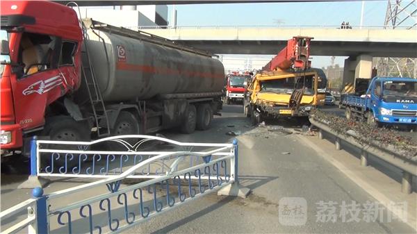 12月15日09分44时,南通市崇川区长江中路高架姚港油库附近发生一起交通事故,一辆吊车追尾一辆油罐车,吊车司机被卡在驾驶室内,消防部门接到报警后立即调集辖区消防队赶赴现场进行救援。