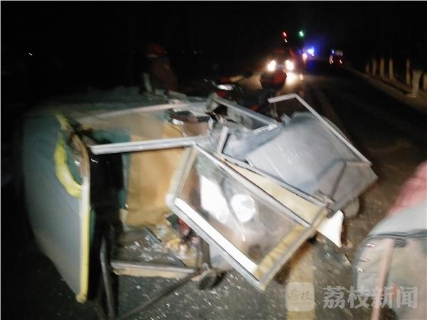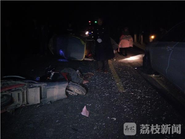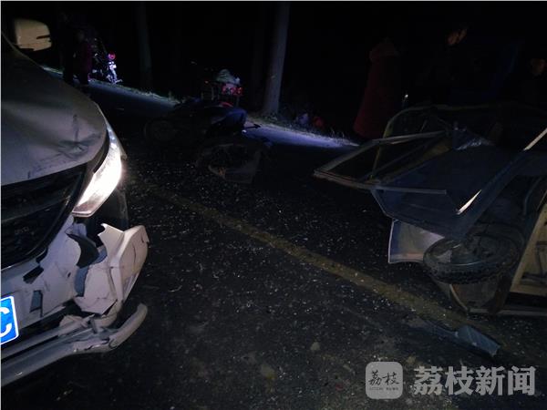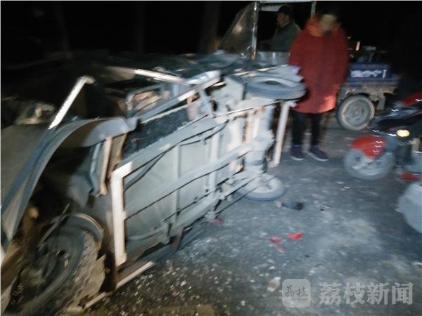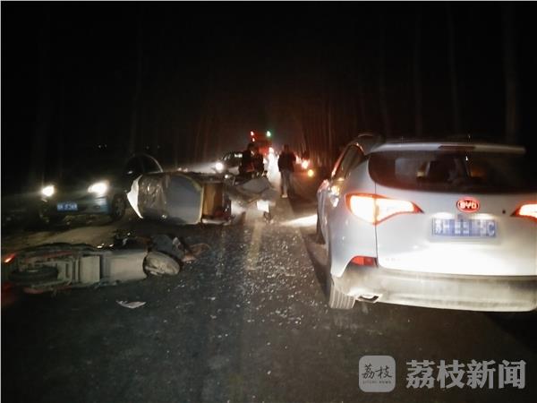 今天(12月16日)晚上六点半左右,在淮安涟水涟南羊路牌坊进老院地段发生一起五车相撞交通事故。