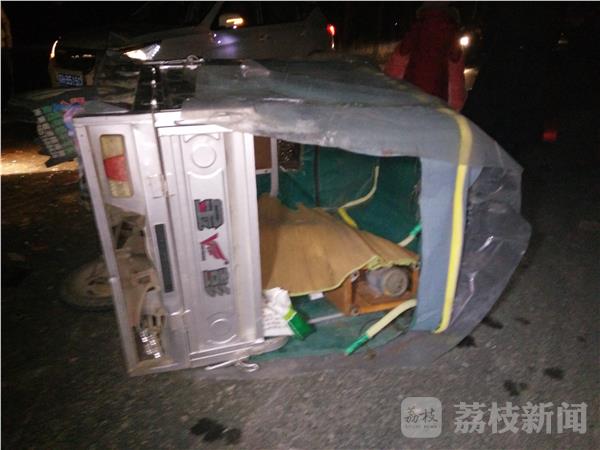 据目击者称,当时他由东向西行驶,看到脚踏三轮车与一辆电动三轮车相撞,电动三轮车被撞倒在地。