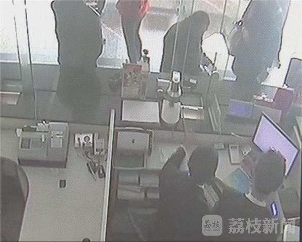 银行监控录像显示,12月14号上午九点多,一位中年妇女带着一位老人急匆匆走进淮安涟水五岛湖支行6号窗口办理业务,当柜员询问其办理什么业务时,老人递上了一张卡片,说是要取钱。