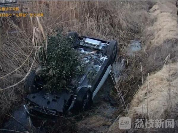 昨天(12月16号)傍晩5点,在淮安市涟水县涟新路李集化工园区附近的路上,一辆正在行驶的轿车突然翻入路东的沟渠,事故导致轿车损毁严重,好在车上的两名驾乘人员在路人的帮助下脱险。