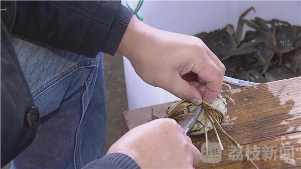 金坛区农民陈国洪家里有40亩蟹塘,一大早,他和妻子忙着捆扎螃蟹,准备发往北京、广州、上海等地。今年的螃蟹销售已经进入尾声,价格也在不断走高,特别是大规格的螃蟹。金坛区农民 陈国洪 :“随着冷空气来了,价格要上升一点,(涨)五块到十块一只的样子,2两5配3两5的公蟹大概要卖到35块一只,就是70块钱一对,4两的公蟹3两母,要卖到六十五到七十五一只。”