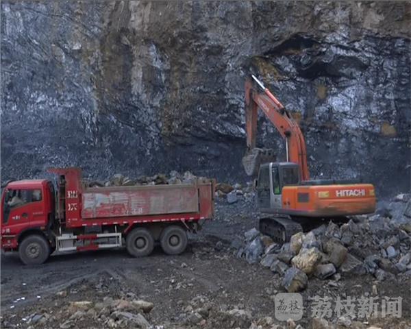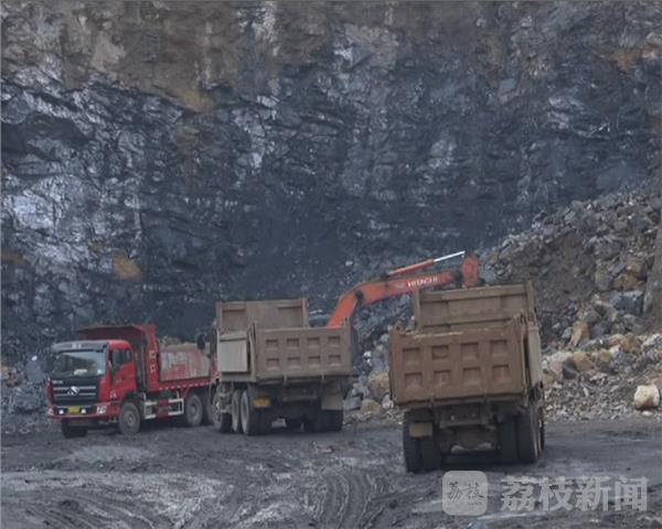 12月15号中午11点,根据举报人的指引,记者来到了这处早已废弃的采石宕口,但发现进入现场的道路泥泞不堪,被轧出了深深的沟痕,显然是常有大车进出。在路边,虽然竖着“严禁开采”的警示牌,但大型机械开采的轰鸣声正在向记者传来。记者先是看到一辆满载着石块的大货车从里面驶出来,之后就发现三辆大货车正停在宕口,旁边一台挖掘机正在给其中一辆货车装运石块。