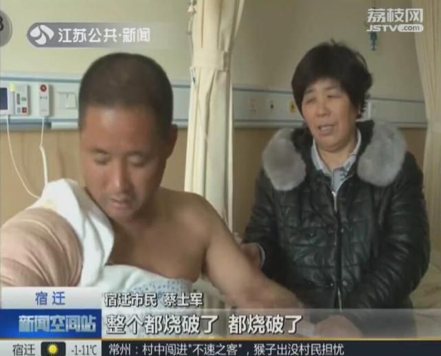 宿迁市民蔡士军:酒精吹也吹不灭,我就忙着擦,一看看整个都烧破了!