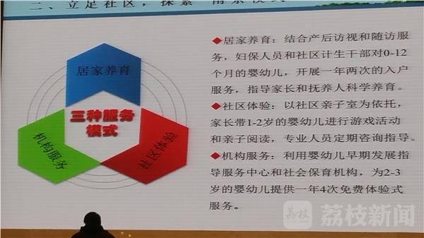 当下社会,尤其是随着全面两孩政策的放开后,对于儿童早期发展,如何才能把政府、社区、机构、家庭的努力,形成合力,打通儿童早教的“最后一公里”? 南京市在全国较早启动了“1+1+N工程”。即1个区级指导中心、1个街道指导站(或社区中心站)和若干个社区亲子室组团,让0-3岁婴幼儿能在家门口享受普惠性、均等化指导服务。南京市卫计委副主任丁小平:“目前已建成1个市级、11个区级儿童早期发展指导服务中心、493个街镇站(室),正在按照每3万人口的区域建一个幼儿园的要求在推进。我们鼓励在女职工集中的区域创建幼儿园,鼓励民办幼儿园开办托班,采取减免租金、政府购买服务等措施,引导社会兴办幼儿园,目前全市已经备案的保育机构199家。”