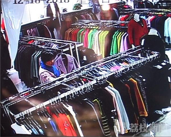女子进入服装店后,找到一件价值500多元的衣服穿在身上,然后乘人不备悄悄离去。