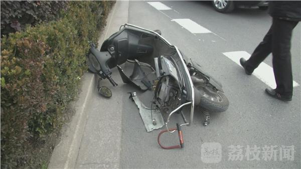 11点左右,记者赶到现场时,被撞的大爷正躺在道路中间,他骑的电动车被撞得整个散了架,各种碎片散落了十几米。被撞的老人虽然身上没有明显外伤,但是老人感到腿部不能动弹。