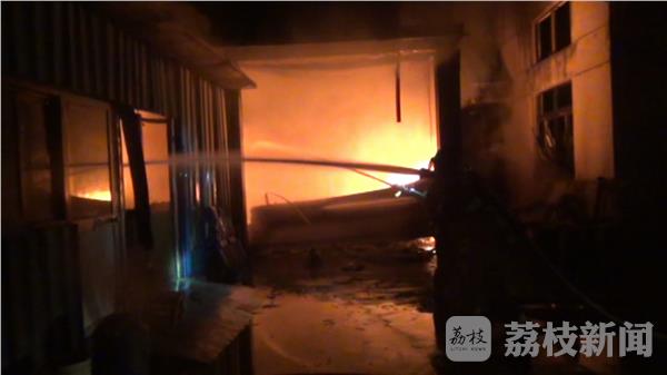 今天凌晨1点左右,南通市金沙镇一个小作坊车间突然着火,消防指挥员立即下令从正门出两支水枪灭火,同时在仓库周边进行火势堵截。知情人说火场内部还有两个煤气罐,消防队员在水枪掩护下将煤气罐转移出来。经过40分钟的扑救,火被扑灭。目前,起火原因正在调查之中。